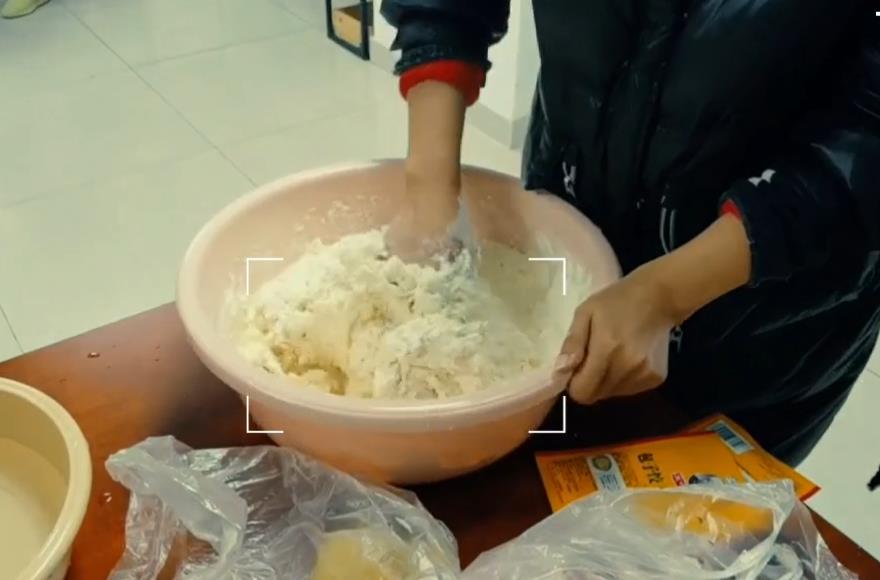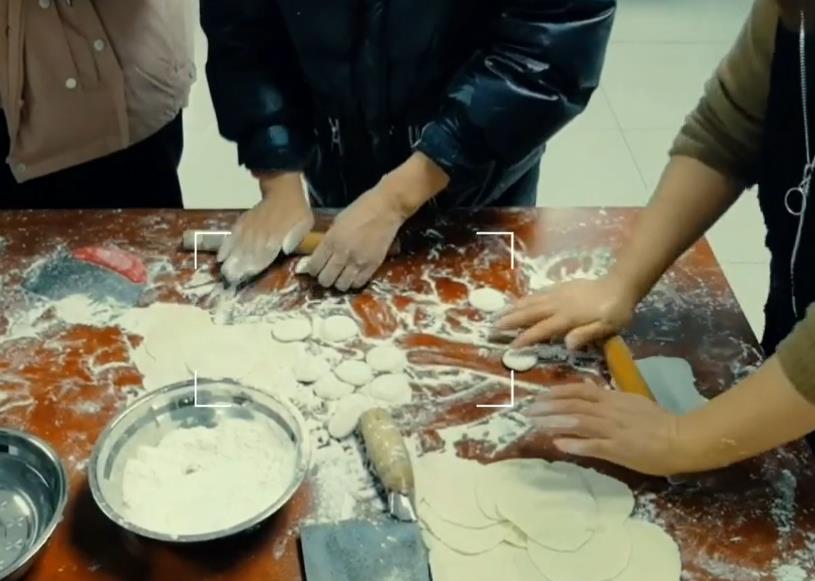 伙伴們積極參與、各顯身手,一邊嘮家常、一邊憶往昔,大家分工合作:拌肉餡、搟餃子皮、包餃子,現場其樂融融,溫馨有趣。